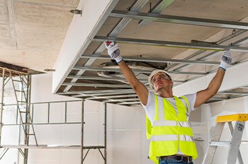 Professional gypsum ceiling installation for residential and commercial spaces, including false ceilings, decorative designs, lighting cut-outs, and clean finishing with high-quality materials.